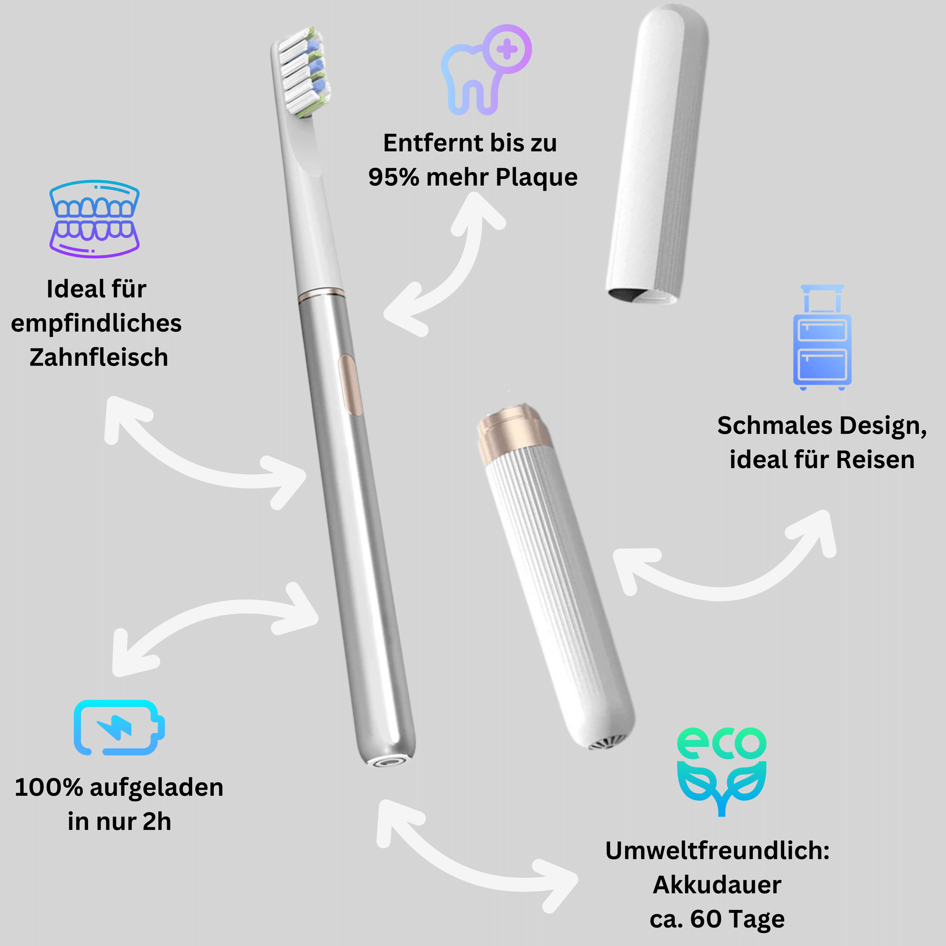 Probier unsere Schallzahnbürste aus und lass dich von ihrer Qualität, Leistung und einfachen Handhabung überzeugen!
